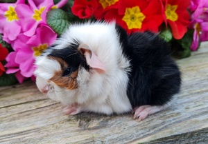 Oreo durfte in die Liebhaberhaltung von Ramona ziehen. Sie hat sich in das süße Gesicht dieser kleiner "Friesenscheckin" verliebt. Hier trifft sie auf Neele, Kastrat Marco und die Rentnerin Fussel. Und sie bringt Leben in die Gruppe.
