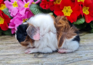 X-Woman (Wunschname) ... eine kecke, springfreudige kleine Maus ... sie durfte als Liebhaber-Rosette in die Zucht von Saskia ziehen ... eine schildpatt-weiße Rosette haben wir eigentlich immer, so hieß es. Am liebsten mit einer weißen Gesichtshälfte (andere Seite), frech, neugierig .... Wünsche werden manchmal sofort erledigt ... und sie ist genauso so wie man es sich gewünscht hatte.