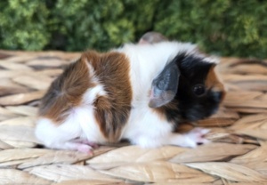 Diese kleine Maus mit einer süßen Gesichtszeichnung zog im Februar in die Liebhaberhaltung von Andrea und Thomas. Hier trifft sie auf Kastrat Ujax und das Mädel Hazel. Sie bewohnen ein sehr großes Gehege mit viel Lauffläche und somit kommt auch Leben in die Gruppe. Bereits am zweiten Tag machte sie sich ganz lang und nahm ein Leckerchen aus der Hand ... genau wie Hazel es vormachte ...